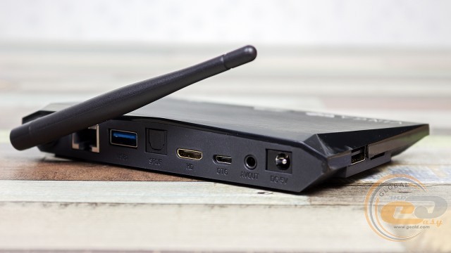 На тильній стороні знаходиться розетка RJ45, USB 3.0, S/PDIF out, відеовихід micro-HDMI, роз'єм micro-USB з підтримкою OTG, аудіовихід AV і роз'єм живлення. У свою чергу на лівій стороні розташувалися порт USB 2.0 і кард-рідер з підтримкою формату microSD.