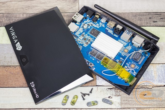Знявши кришку, ми виявили друковану плату синього кольору, на якій і розпаяні всі ключові компоненти медіаплеєра.