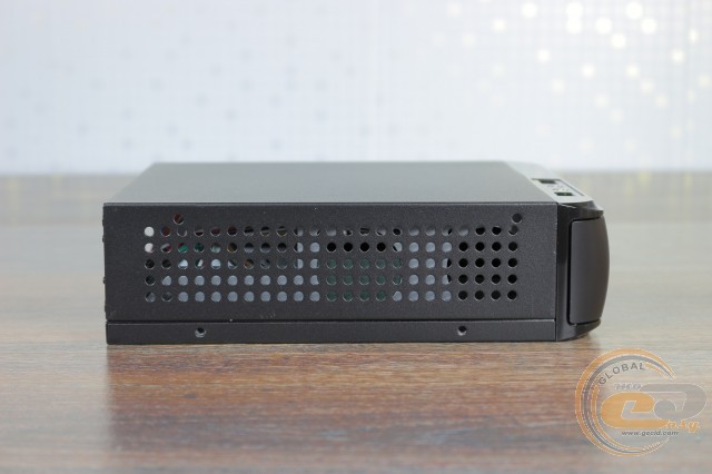 На задню стінку корпуса винесено отвір під інтерфейсну панель материнської плати і гніздо для підключення кабелю живлення від зовнішнього БЖ. Слотів розширення немає.