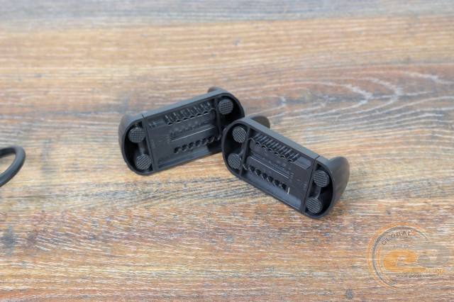 У комплекті є пара пластикових ніжок, щоб використовувати корпус у вертикальному положенні. Вони оснащені гумовими накладками для кращого зчеплення з різними типами поверхні.