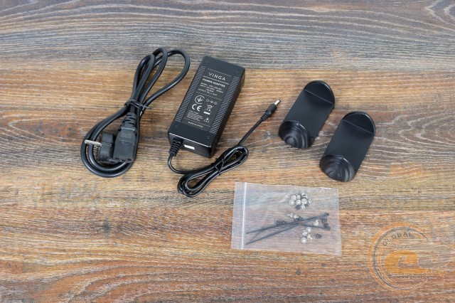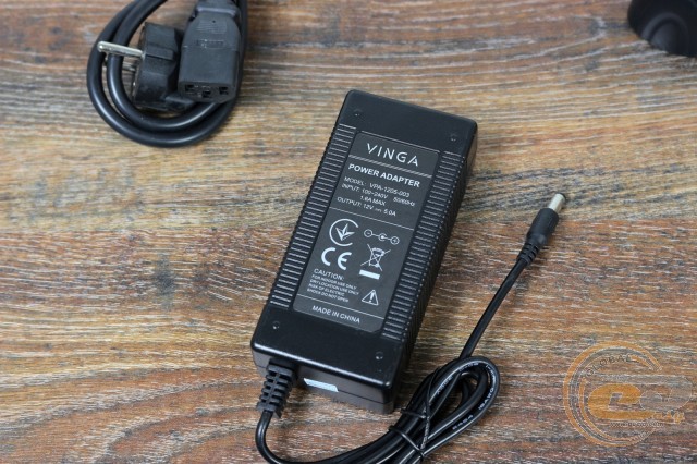 Усередині встановлений блок живлення Vinga VPS-120W12V-01, який живиться від зовнішнього джерела Vinga VPA-1205-003. Завдяки такому тандему не потрібно підбирати спеціальні материнські плати з живленням від зовнішнього джерела, а можна використовувати звичайні варіанти. Потужність БЖ становить 120 Вт. Цього більш ніж достатньо, враховуючи відсутність дискретної відеокарти.