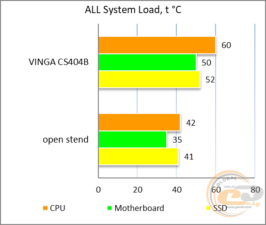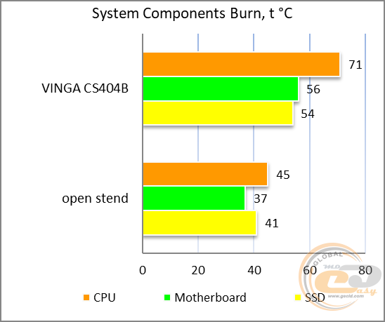 Vinga CS404B - це цікава модель для побудови офісного або мультимедійного міні-ПК. Як правило, для вирішення подібних завдань досить енергоефективних процесорів, тому з температурами всередині проблем бути не повинно. Підійдуть і 35-ватні ЦП, але бажано підібрати більш ефективний кулер, ніж боксова модель.