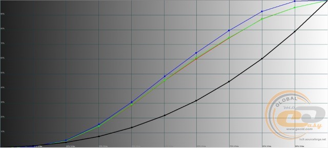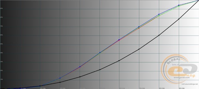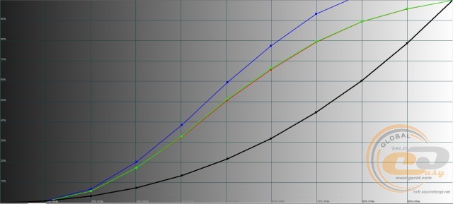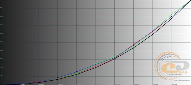 Претензії виникли і до налаштування гама-кривих: у всіх профілях вони знаходяться вище від еталонної чорної лінії, що може призвести до причини пересвічування півтонів і втрати деталей на світлих ділянках зображення. Найкраще в цьому плані ситуація з профілем «М'який», а гірше всіх впорався «Світло».