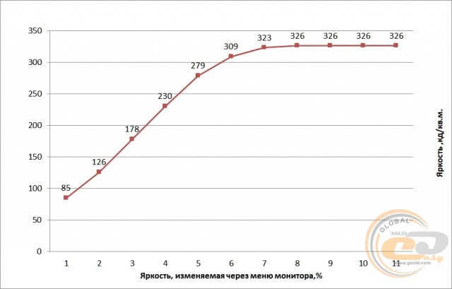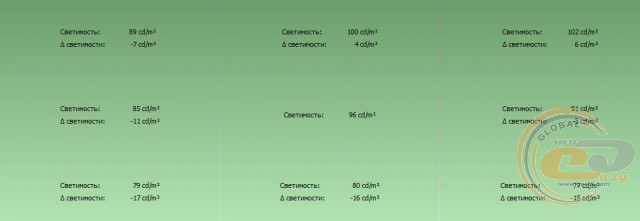 Максимальне відхилення яскравості щодо центральної ділянки не перевищує 19 кд/м2 - не ідеальний, але хороший результат.
