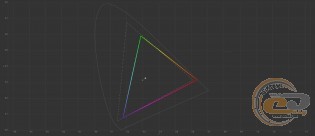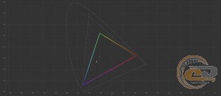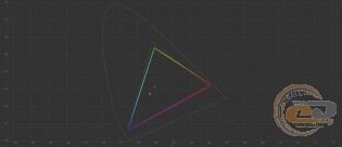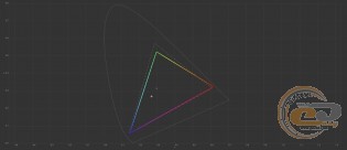 CIE-діаграми для простору Adobe RGB оцінювати не будемо - вони важливі при розгляді професійних моніторів, а для sRGB бачимо однакову картину: помітний зсув двох опорних точок і мінімальний у третій. У результаті буде недостача в зоні жовтих, зелених і блакитних відтінків.