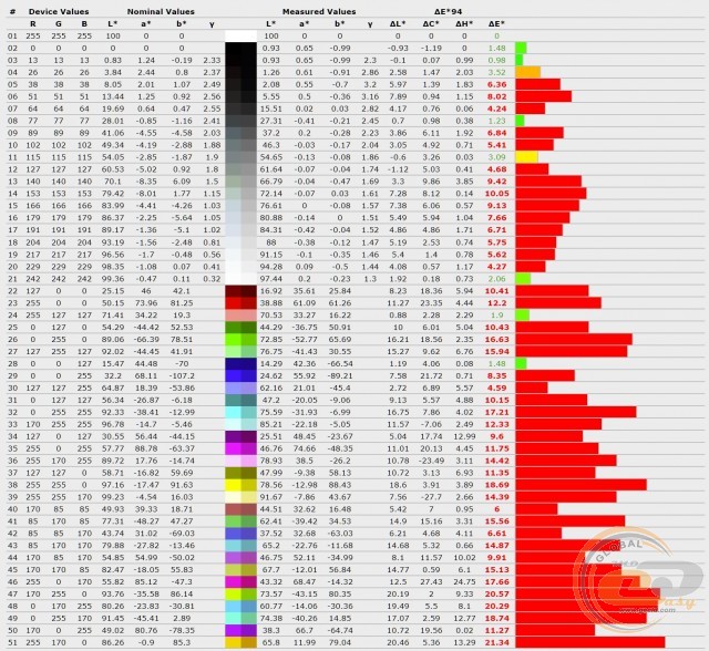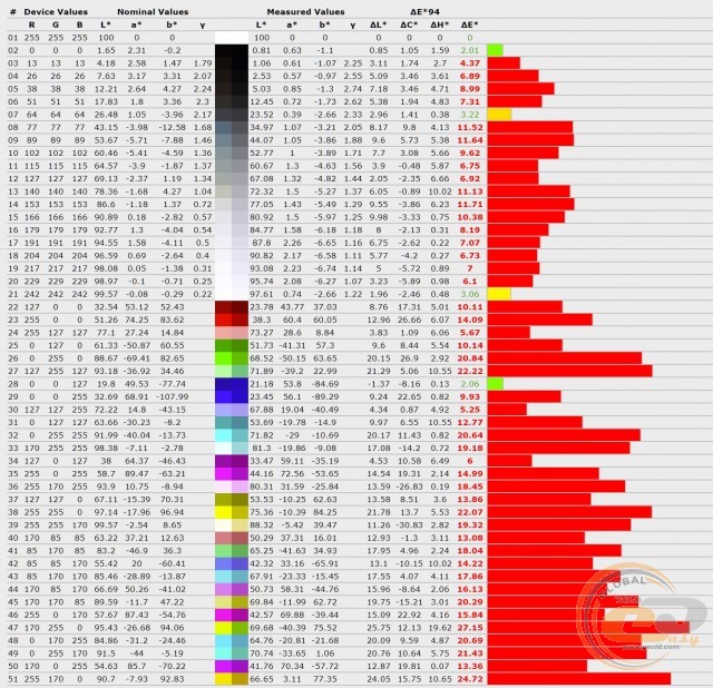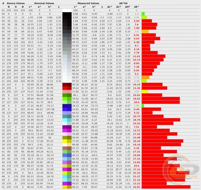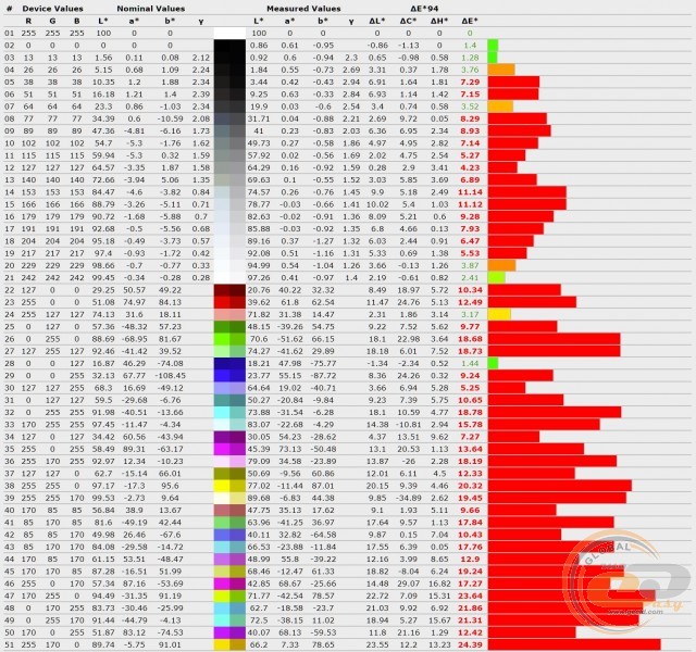А ось високою точністю передачі кольорів і відтінків жоден з цих профілів похвалитися не може. У всіх разах середнє і максимальне відхилення ΔE були набагато вищі 1,5 і 4 відповідно.
