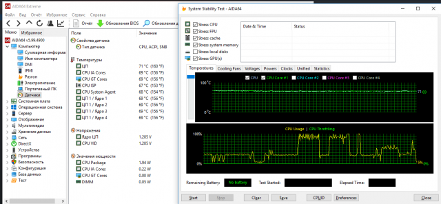 У простої температура всередині корпуса не піднімалася вище за 60°С для процесора і 57°С для відеоядра.