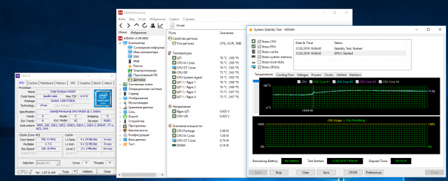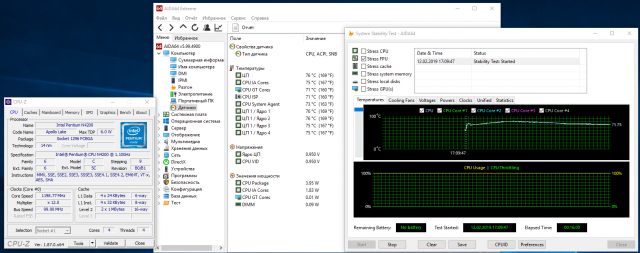 Запуск стрес-тесту прогріває ядра CPU до 76°С, а iGPU - до 74°С. Критичною для нього вважається температура в 105°С, тому ніяких проблем зі стабільністю роботи не виникло.