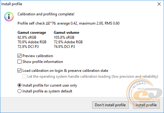 Покриття палітри sRGB і Adobe RGB досягає 106% і 73% відповідно. Нагадаємо, що хорошими для непрофесійних моніторів можна вважати показники в межах 90% і 65% відповідно. Простіше кажучи, дисплей навряд чи підійде для професійної корекції, але рядові користувачі будуть задоволені. Це куди краще поширених TN-панелей з їх менш якісною передачею кольору і низькими кутами огляду.