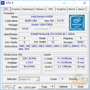 Intel Pentium N4200 (4 x 1,1 – 2,5 ГГц; TDP – 6 Вт) |