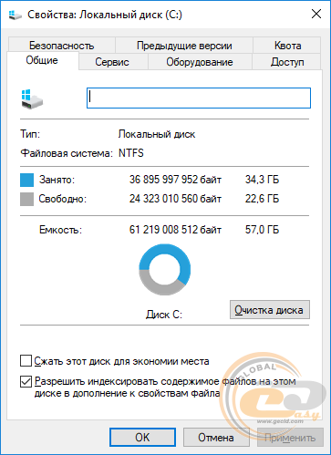 Дискова підсистема Vinga AIO BUSINESS B400 представлена флеш-накопичувачем eMMC 5.1 об'ємом 64 ГБ. Він демонструє звичну продуктивність: послідовна швидкість читання нестискуваних даних досягає 180 МБ/с, а записи - 122 МБ/с.