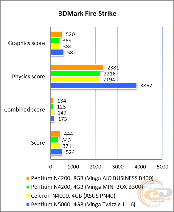 У більшості випадків лідером є лептоп, а слідом, з перемінним успіхом, йде тестовий моноблок. Гарним результатам він зобов'язаний в тому числі 8 Гб оперативної пам'яті в двоканальному режимі, а ось eMMC-накопичувач є його слабким місцем. Проте рівня продуктивності новинки вистачить для вирішення простих повсякденних завдань: інтернет, офіс, мультимедіа та запуск простеньких ігор.