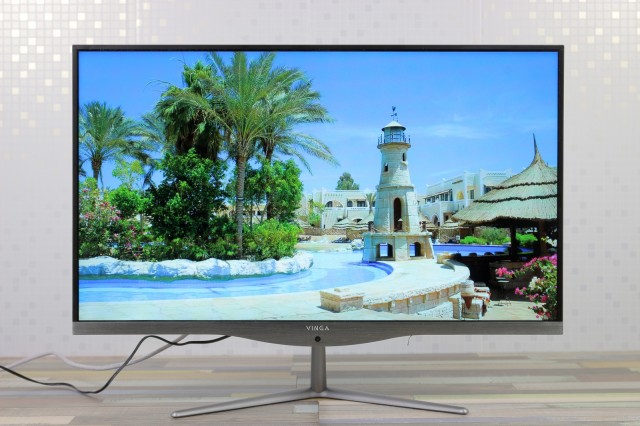 У Vinga AIO BUSINESS B400 використовується 23,8-дюймова IPS-панель з роздільною здатністю 1920×1080 і глянсовим покриттям. На виході отримуємо приємну передачу кольору, нехай і з холодними відтінками, максимальні кути огляду і відмінну контрастність, яка в основному характерна VA-панелям.