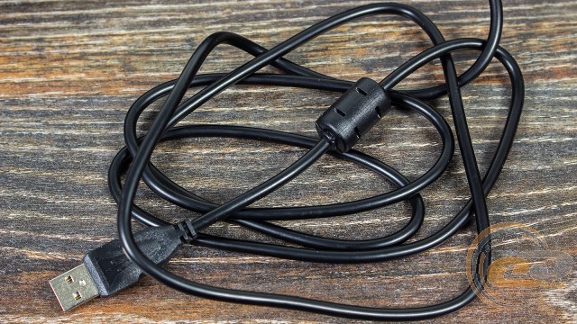 Клавіатура підключається до ПК за допомогою USB-кабелю довжиною 1,8 м. Він без нейлонового обплетення, трохи товщі від звичайного і з феритовим фільтром на кінці.