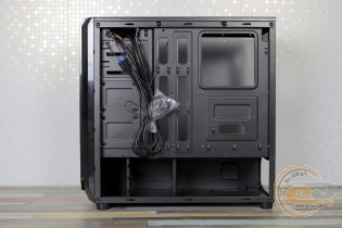 До процесу складання в нас немає жодних претензій. Вільного простору більш ніж достатньо, тому складнощів не буде. З матовою транспортувальною плівкою на боковині нутрощі корпуса видно погано, проте після її зняття комплектуючі виглядатимуть лише трішки темнішими, ніж зазвичай.