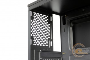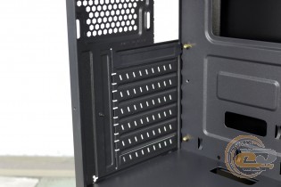 Завдяки штампуванню та ребрам по периметру права боковина при товщині 0,6 мм вирізняється гарною жорсткістю. Її демонтаж здійснюється цілком звично – зсувом до тильної частини корпуса, для чого є зручний виступ. Кріпиться боковина за допомогою гвинтів з фігурними голівками.