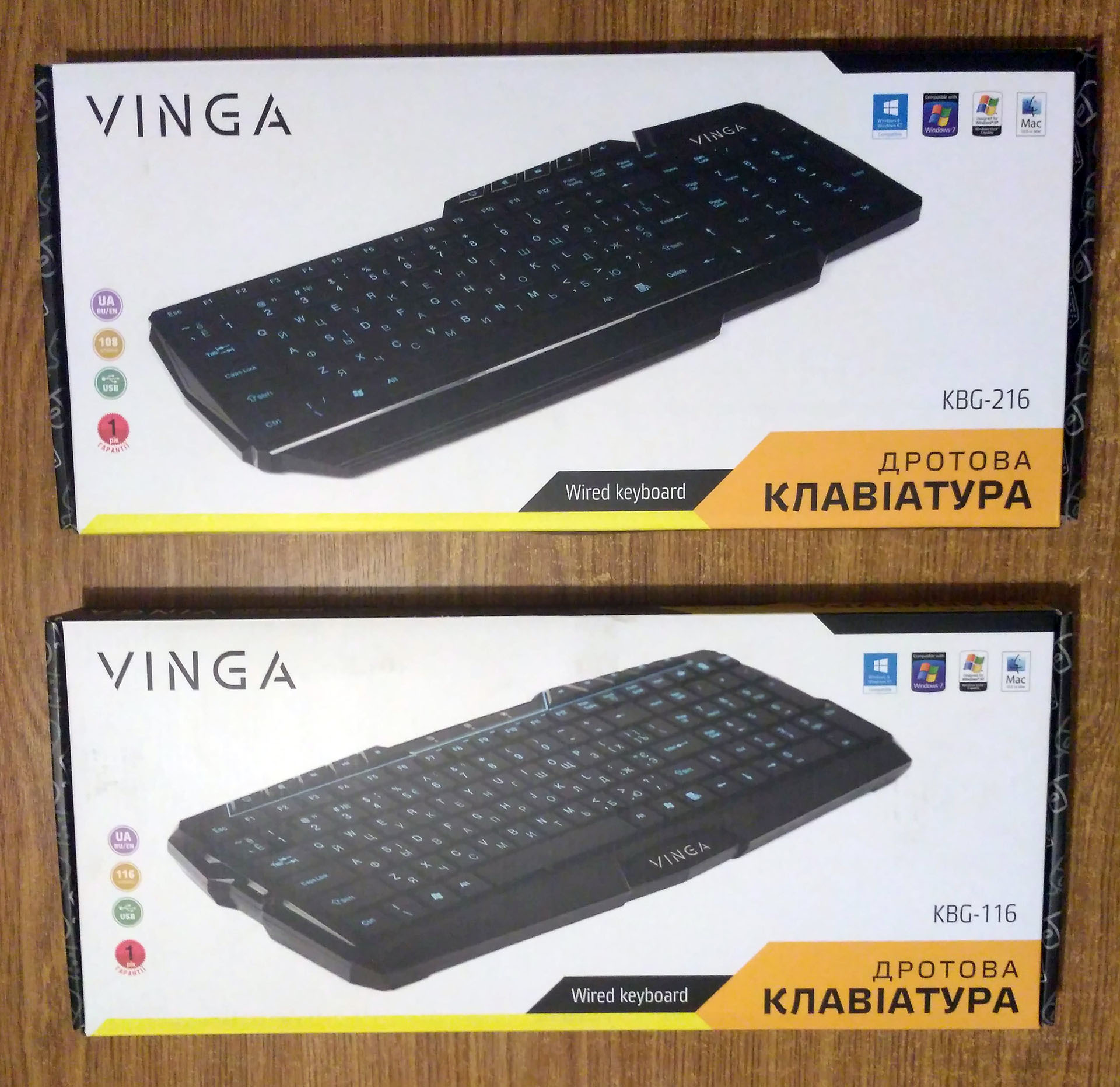 In the descriptions of one of the models, there was also mention of key backlighting, which surprised me even more and tipped the scales in favor of purchase. But judging by the photos, there was no backlighting, and the layout letters were glued onto the keys. In search of the truth, I wandered onto Vinga's Facebook page and asked the company's representatives this question. A prompt response confirmed my fears: there is no letter backlighting, only the edges of the keyboard are backlit. A brief conversation with the company representative about how great it would be if it had backlighting, then I would definitely be the first buyer and post a review of this wonder on my blog, to which I received the response: Okay, agreed! "Wow," I thought, "What if I develop the topic further?" As a result, a few days later, as happy as a clam, I brought home two keyboards for a comparative test. So, meet Vinga KBG-116 and KBG-216. Why these? Firstly, these two models are very similar in all parameters, quite extraordinary in design, they have multimedia keys... and I think I won't be alone if I say that choosing between them is difficult, even despite all their similarities. Let's figure out what unites them and what distinguishes them (if anything does).