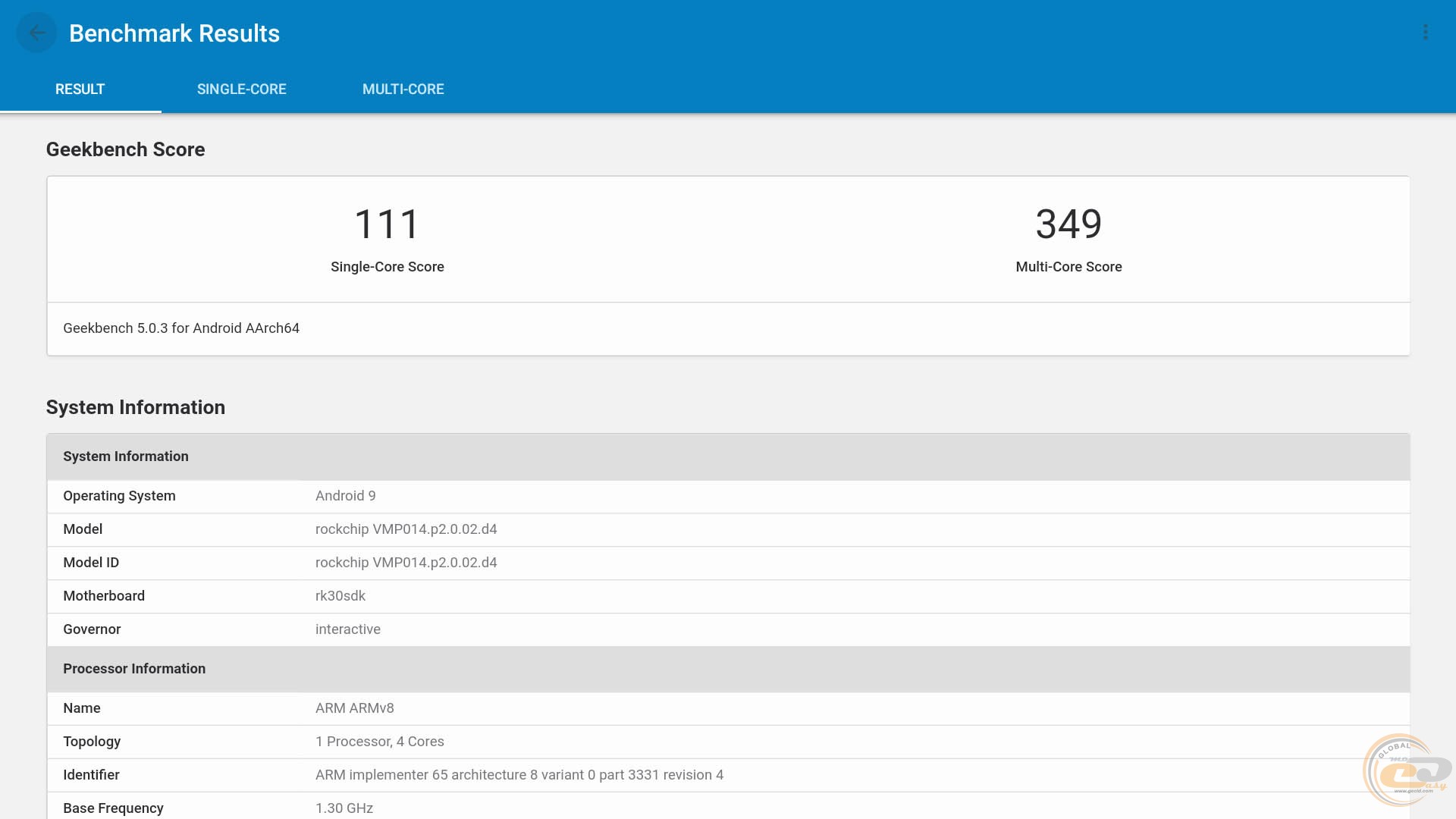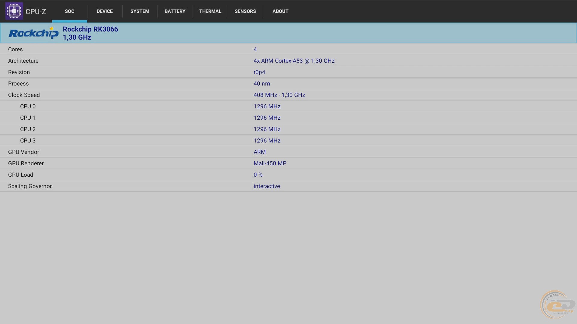 Rockchip RK3328 (4 x ARM Cortex-A53 @ 1,5 ГГц) |