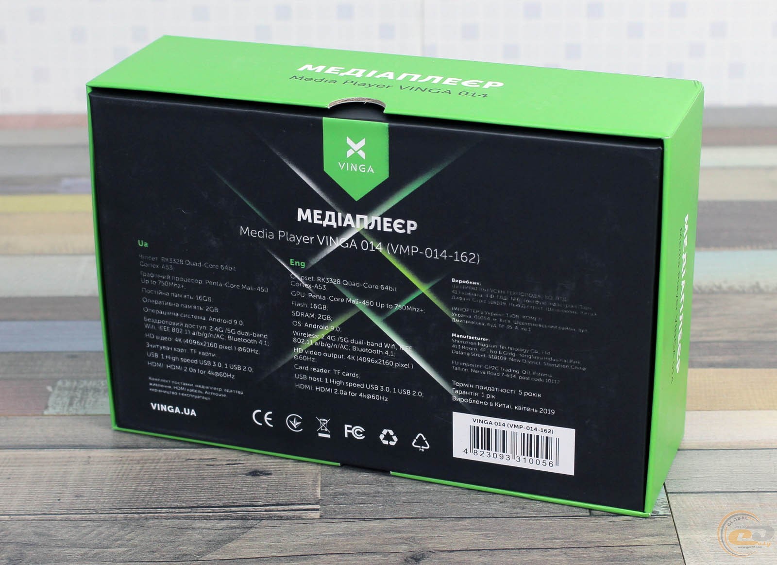 Vinga 014 (VMP-014-162) розташувався в середньому ціновому сегменті всередині фірмової модельної низки. Його рекомендована ціна в роздробі становить 1749 гривень ($73). В основі медіаплеєра використовується 4-ядерний процесор Rockchip RK3328. Він працює в парі зі стандартними для цього сегмента 2 ГБ оперативної пам'яті. Приємним бонусом виступає підтримка передостанньої версії Android 9.0. Давайте ж вивчимо даний пристрій більш детально, і розберемося в доцільності його покупки.