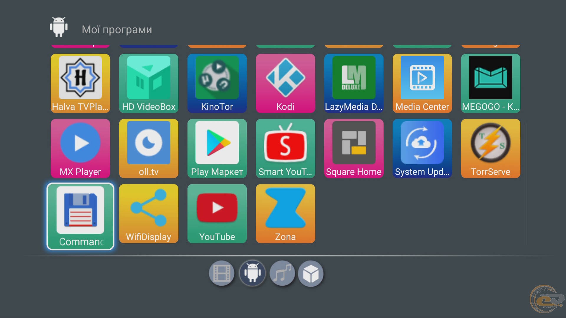 В якості операційної системи використовується Android 9.0. При першому ввімкненні пропонується встановити за замовчуванням один із двох лончерів. Перший - це MediaBox, який відрізняється простим, зручним і функціональним меню.