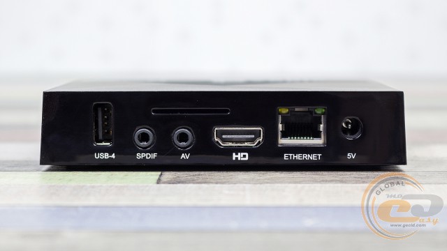 Основні інтерфейси розташовані на тильній грані гаджета. Крім роз'єму для мережевого адаптера, тут зосереджені такі порти введення-виведення: HDMI, мережевий інтерфейс RJ45, два аудіопорти (S/PDIF і AV) і USB 2.0.