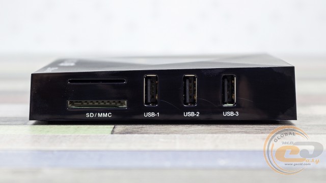 Права боковина відведена під кард-рідер і три порти USB 2.0, тоді як ліва пустує.