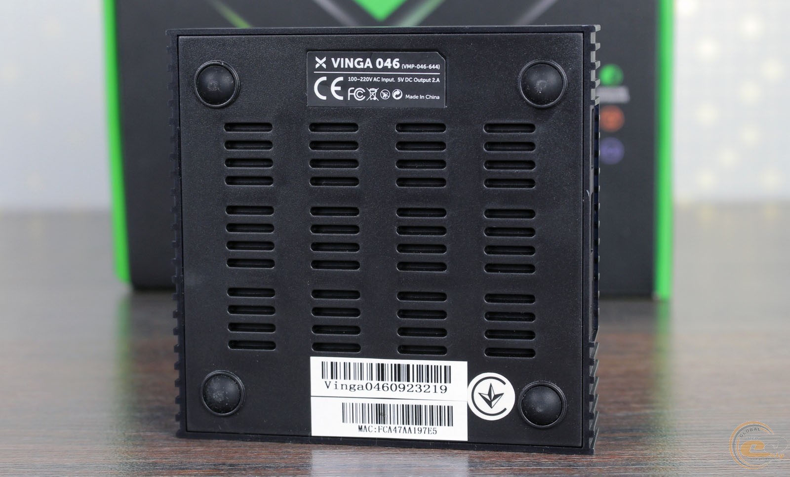 Vinga 046 отримав відносно габаритний корпус з розмірами 105 x 105 x 25 мм. Він трохи крупніше від більшості інших фірмових медіаплеєрів. Це сприяє більш ефективному охолодженню внутрішніх компонентів, так що проблем із перегрівом бути не повинно.