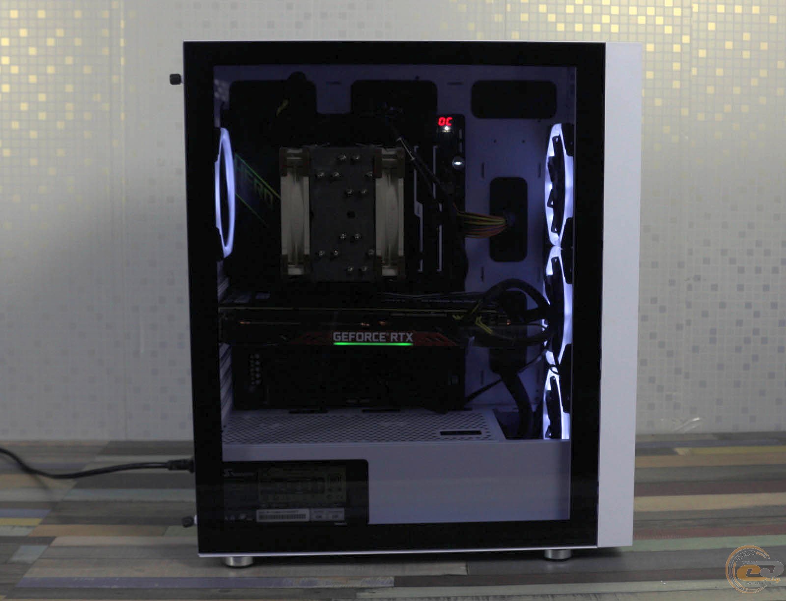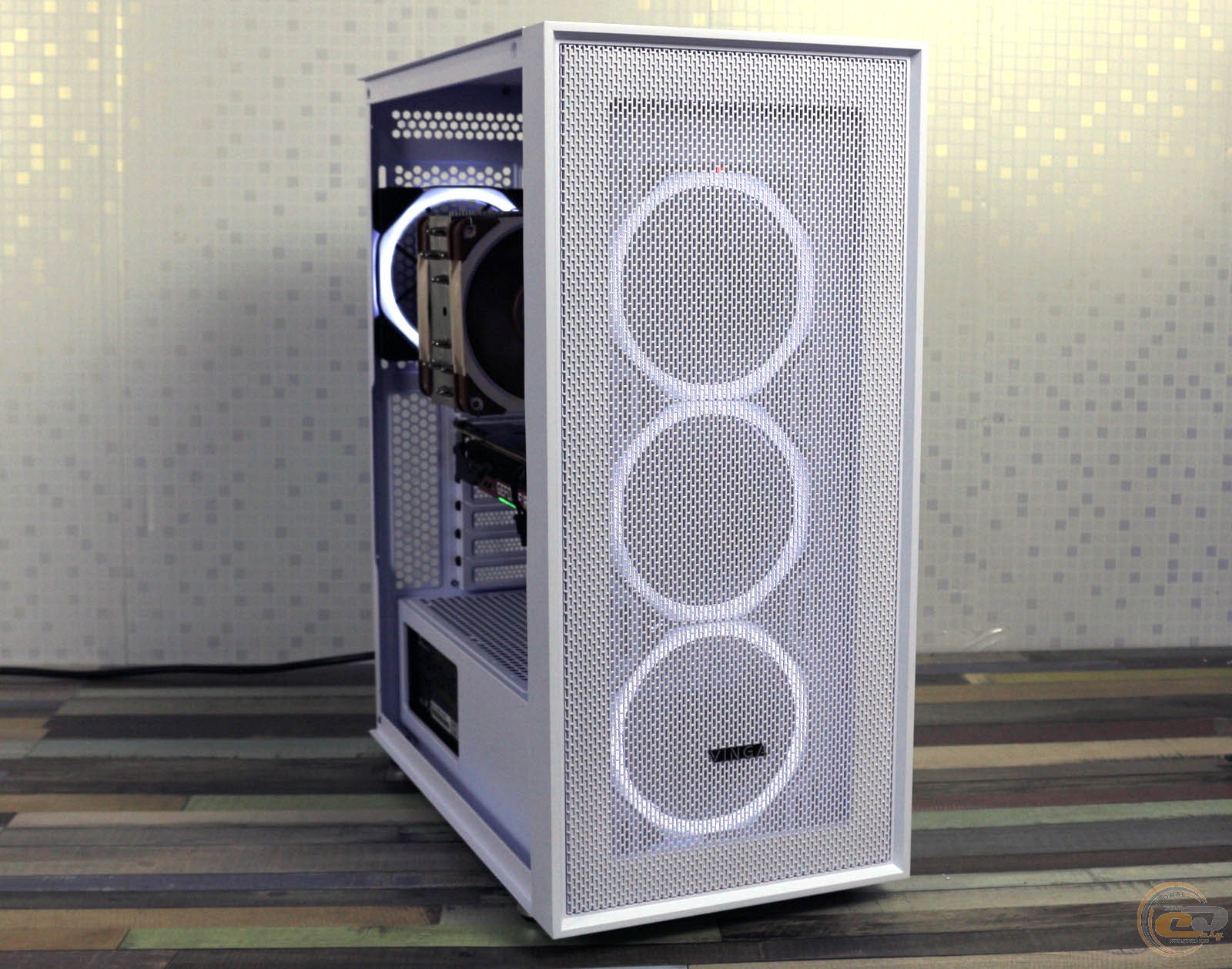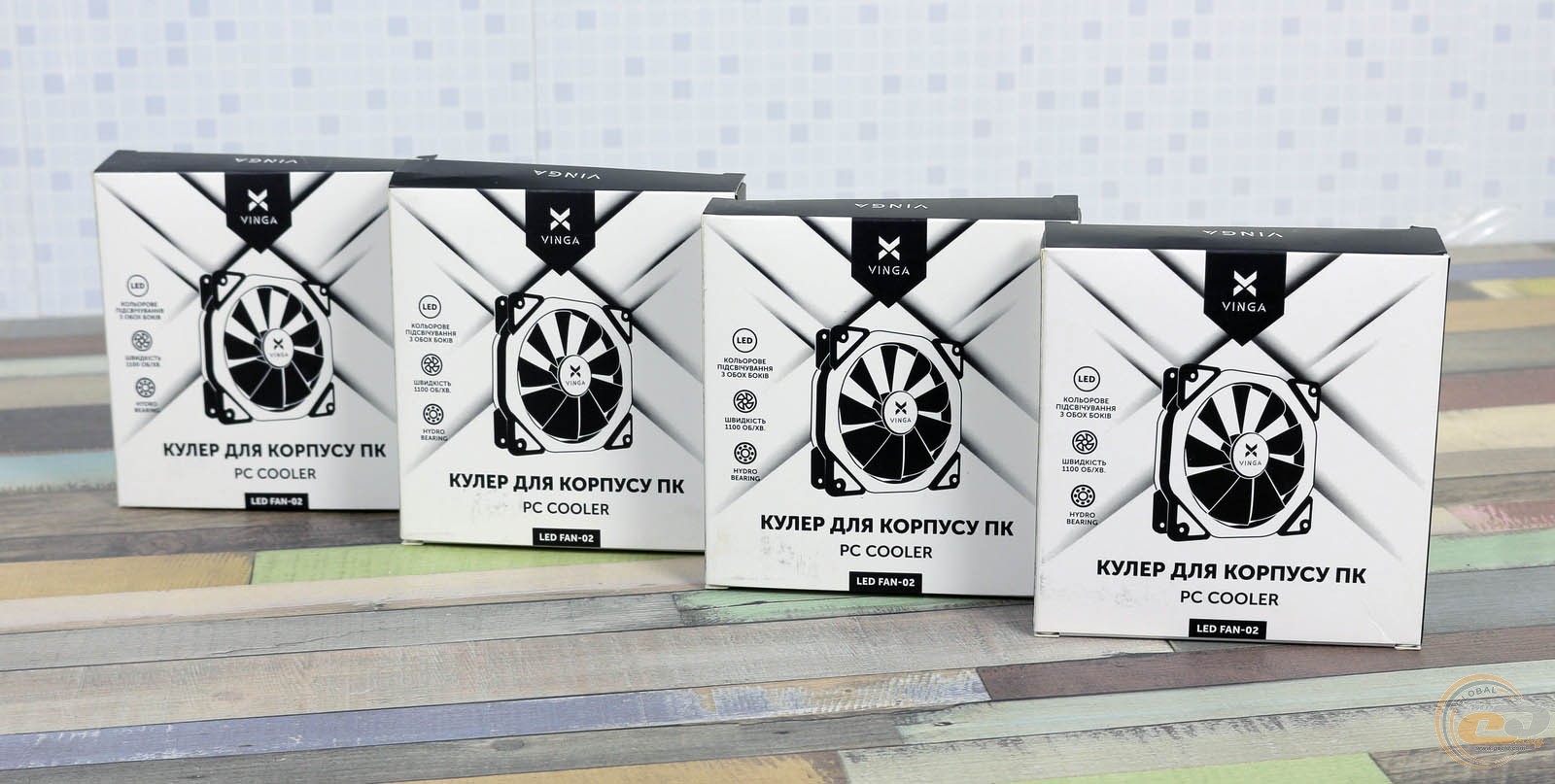 Корпус Vinga Pillar White постачається без вентиляторів, але для тестування такої потужної ігрової системи ми вирішили доукомплектувати його чотирма пропелерами Vinga LED Fan-02. Вони базуються на гідравлічному підшипнику і мають фіксовану швидкість обертання в 1100 об/хв. Три з них встановили на передню панель, а четверту - на задню.