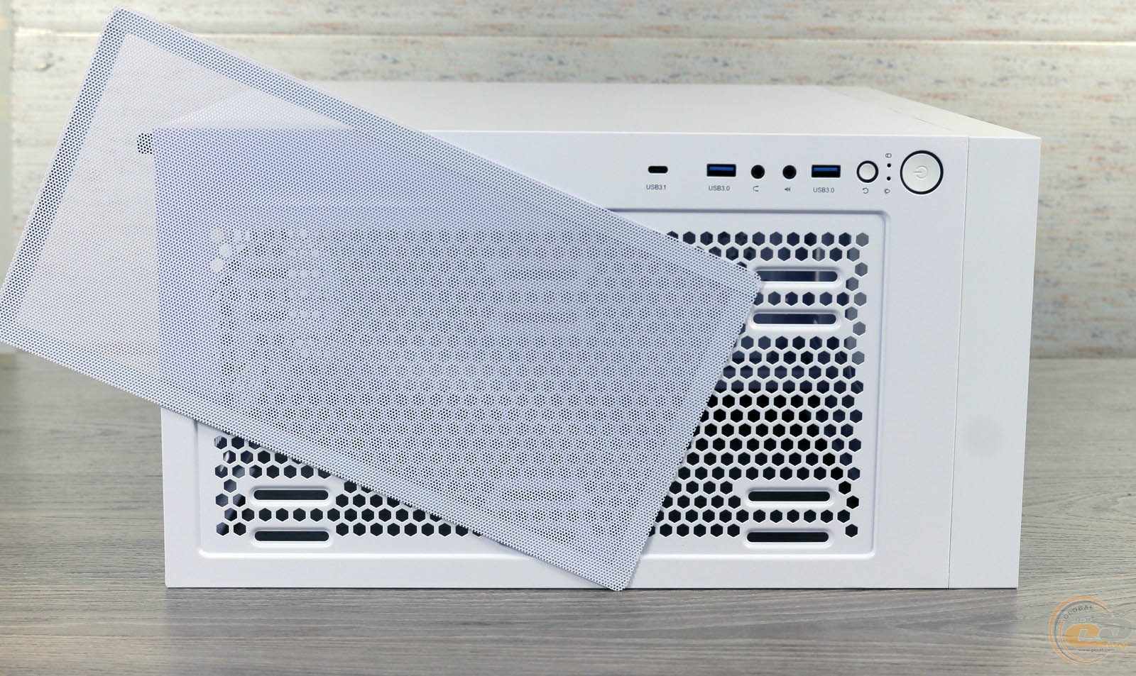 Ще одним важливим елементом верхньої панелі є перфорація, прикрита пиловим фільтром на магнітному кріпленні. Під нею ви зможете закріпити пару 120-мм або 140-мм вентиляторів або радіатор СВО розміром 240 або 280 мм.