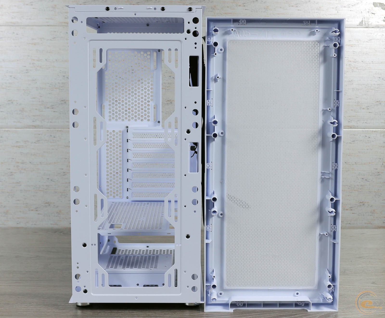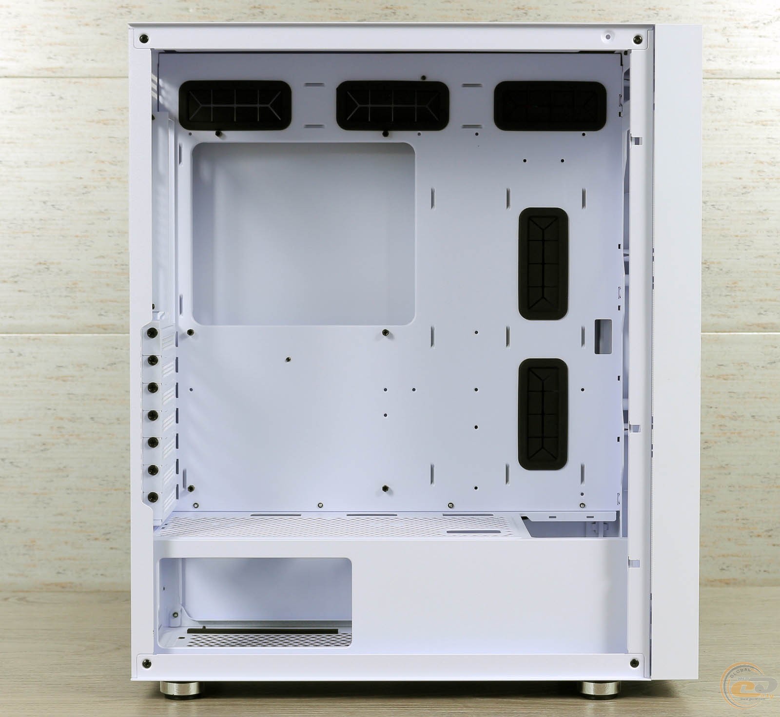 Так, усі грані внутрішніх панелей відмінно оброблені, а прорізи для кабель-менеджменту оснащені гумовими накладками. Усі деталі конструкції добре підігнані, нічого не люфтить і не хитається, та й порізатися під час збірки у вас точно не вийде. У цілому корпус відчувається дорожчим від своєї вартості.