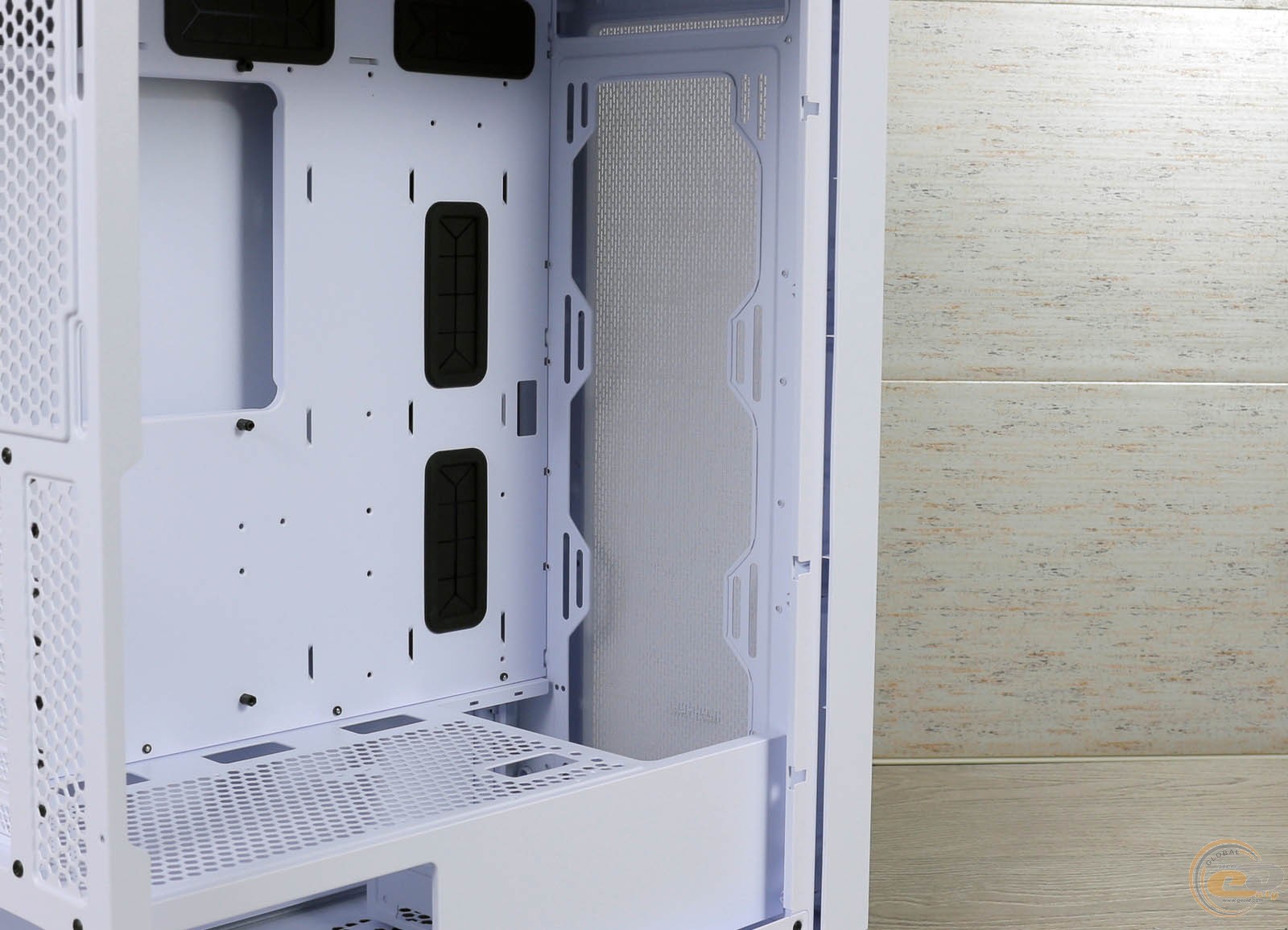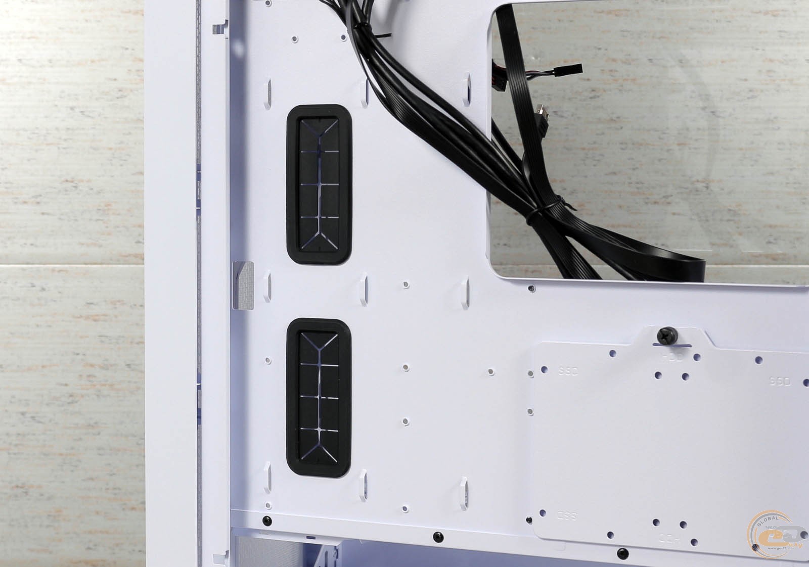 За нею сховалися посадкові місця для трьох 120-мм або двох 140-мм вентиляторів. Замість них можна закріпити радіатор для водянки типорозміром від 120 до 360 мм.