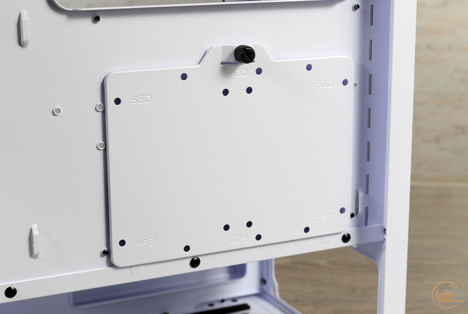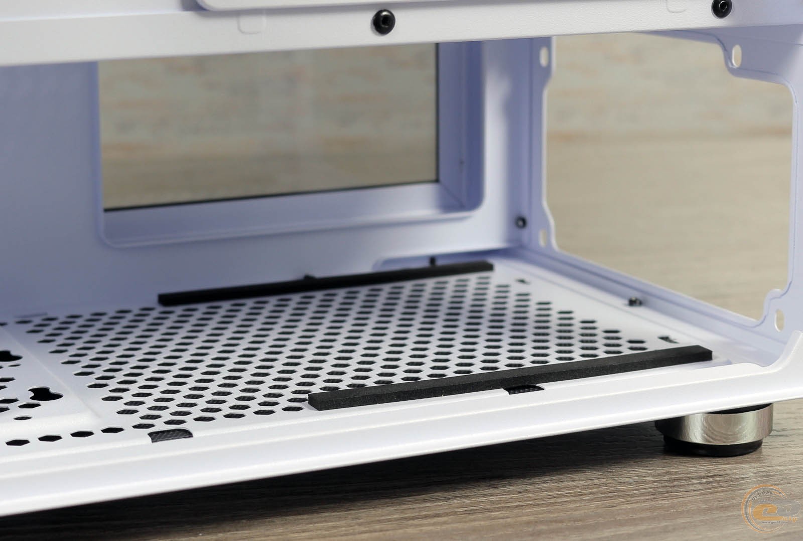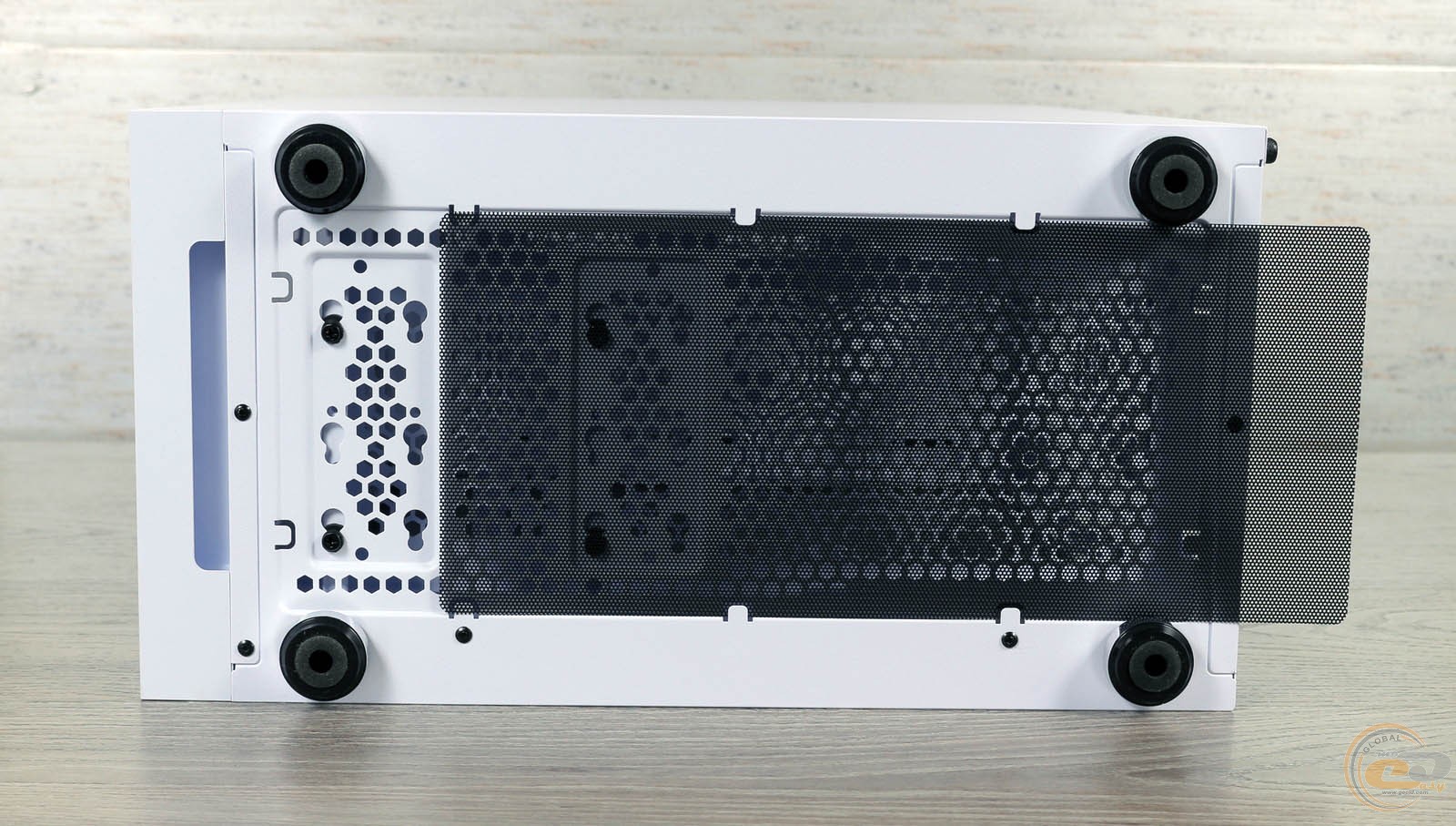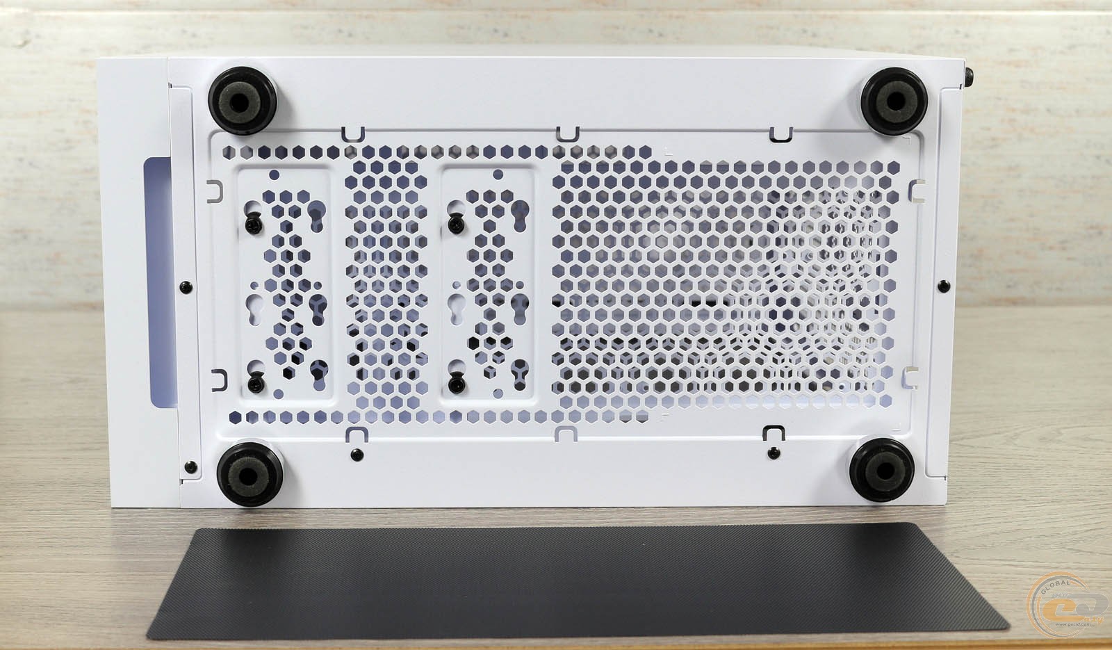 На дні корпуса знаходиться кріплення кошика з накопичувачами і вентиляційний отвір для доступу холодного повітря до БЖ. Усі вони прикриті великим пиловим фільтром. Він легко знімається, продувається і миється.