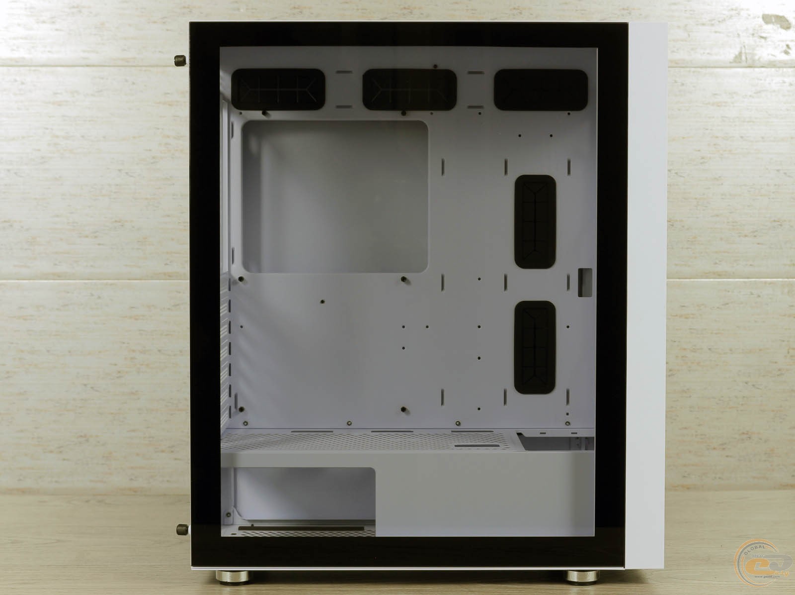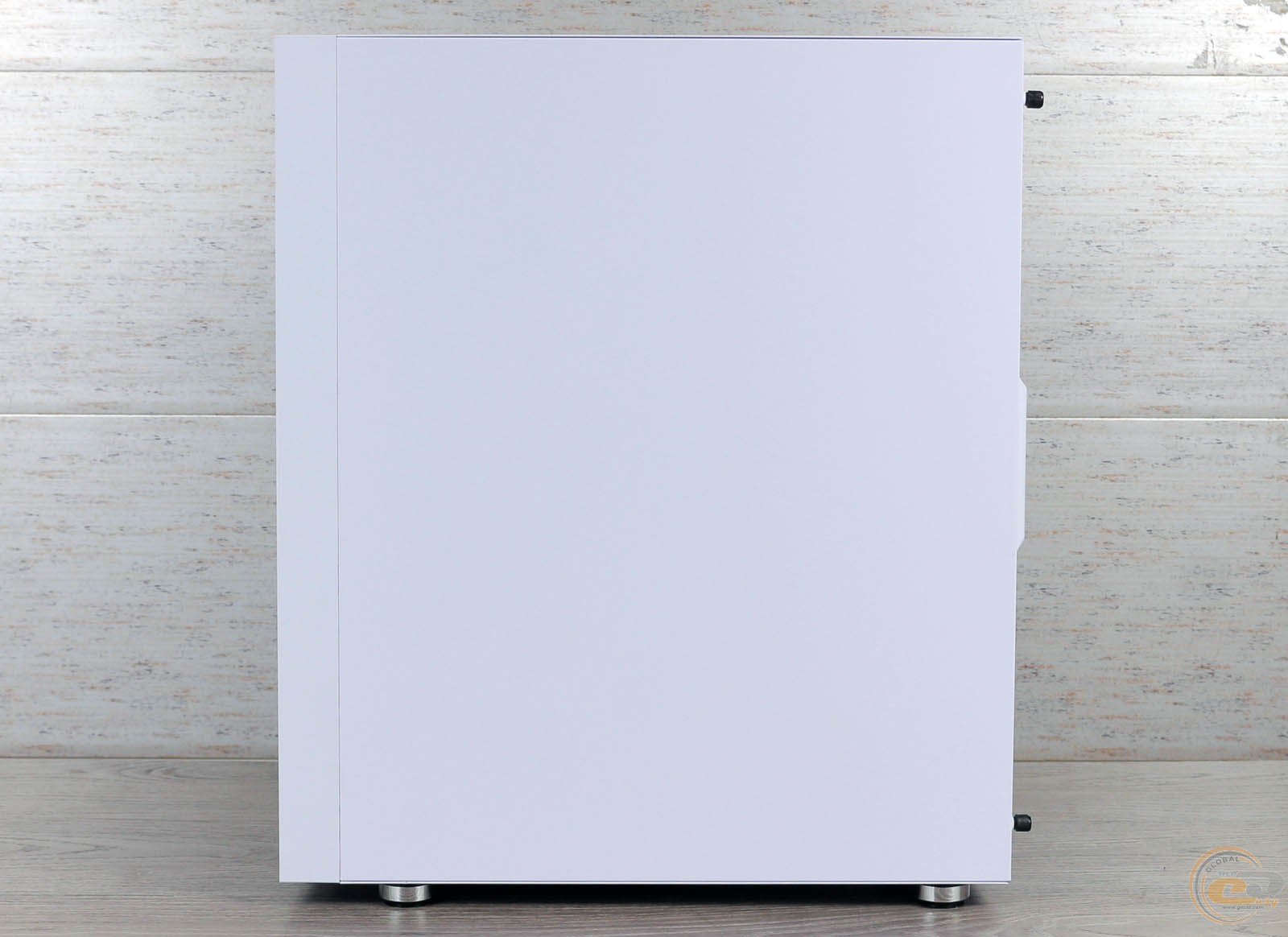 Ліва боковина являє собою прозору скляну панель (373 х 460 мм) товщиною 3,85 мм. Вона дозволяє милуватися внутрішніми компонентами. Тримається вона на двох металевих гвинтах з накатаною головкою. До слова, гвинти не випадають після викручування, і ви їх точно не втратите.
