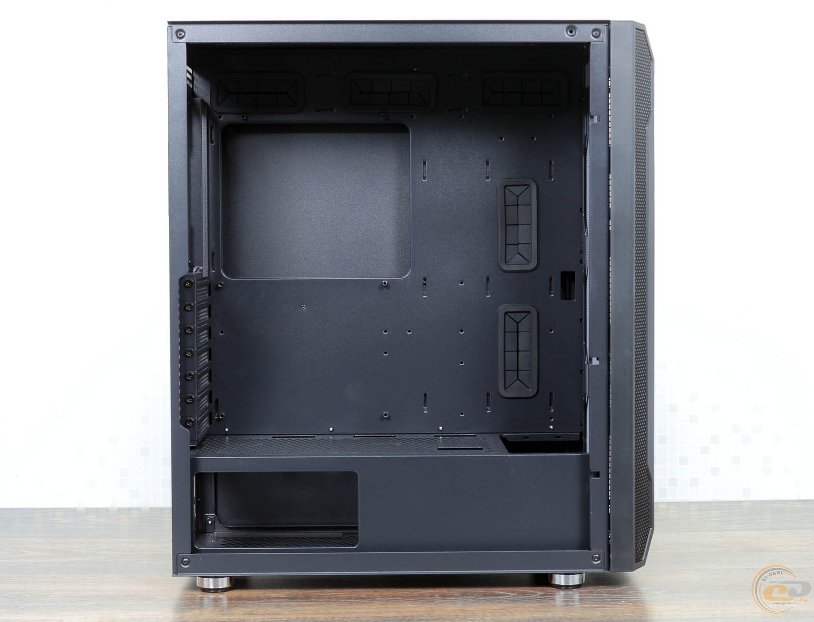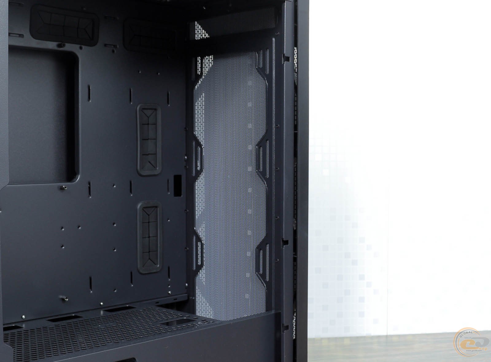 За нею сховалися посадкові місця для трьох 120-мм або двох 140-мм вентиляторів. Замість них можна закріпити радіатор для водянки типорозміром від 120 до 360 мм.