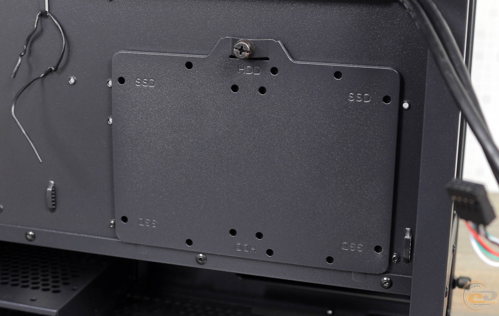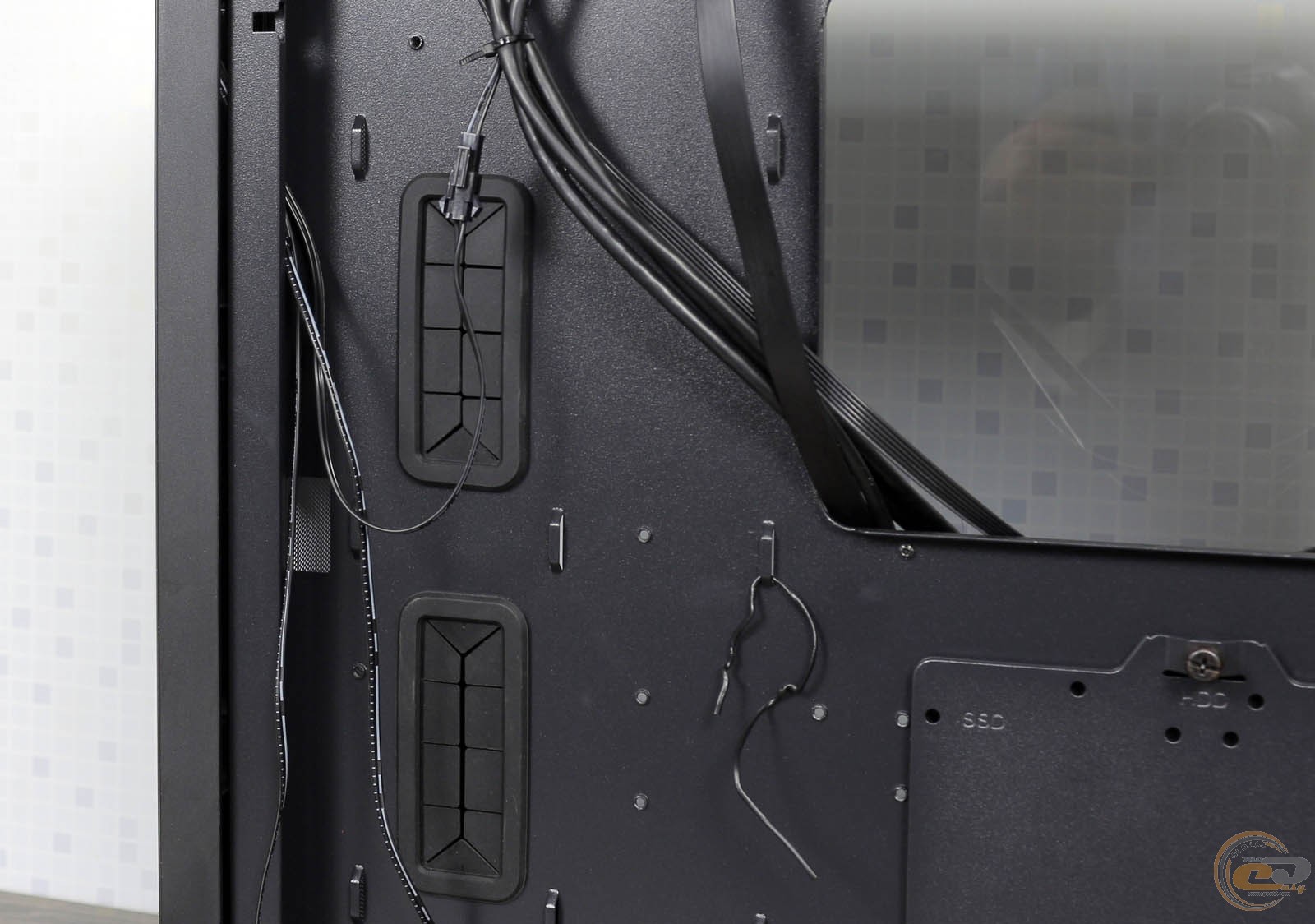 У піддоні материнської плати розташований виріз для зручного встановлення і демонтажу кулера CPU з опорною пластиною (backplate). Для прихованого укладання дротів передбачені п'ять отворів з гумовими ущільнювачами і цілий розсип кріплень під комплектні стяжки.