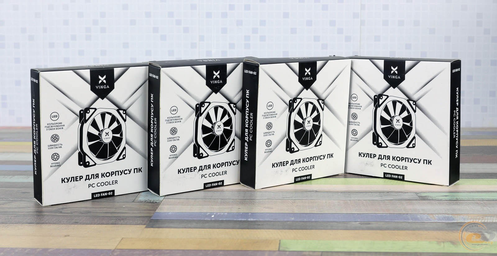 Корпус Vinga Wingman постачається без вентиляторів. Для тестування настільки потужної ігрової системи ми вирішили доукомплектувати його чотирма пропелерами Vinga LED Fan-02. Вони засновані на гідравлічному підшипнику і мають фіксовану швидкість обертання в 1100 об/хв. Три з них ми встановили на передню панель, а четверту - на задню.