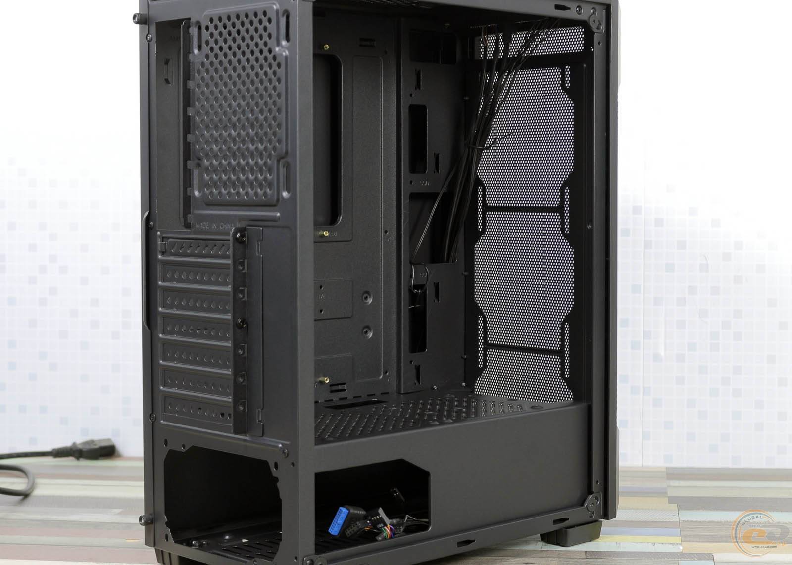 Тильна частина корпуса отримала сім горизонтальних слотів розширення (один з багаторазовою заглушкою). Є загальна притискна пластина, яка фіксується одним гвинтом. Поруч притулився виріз під інтерфейсну панель материнської плати і посадкове місце під 120-мм вентилятор.