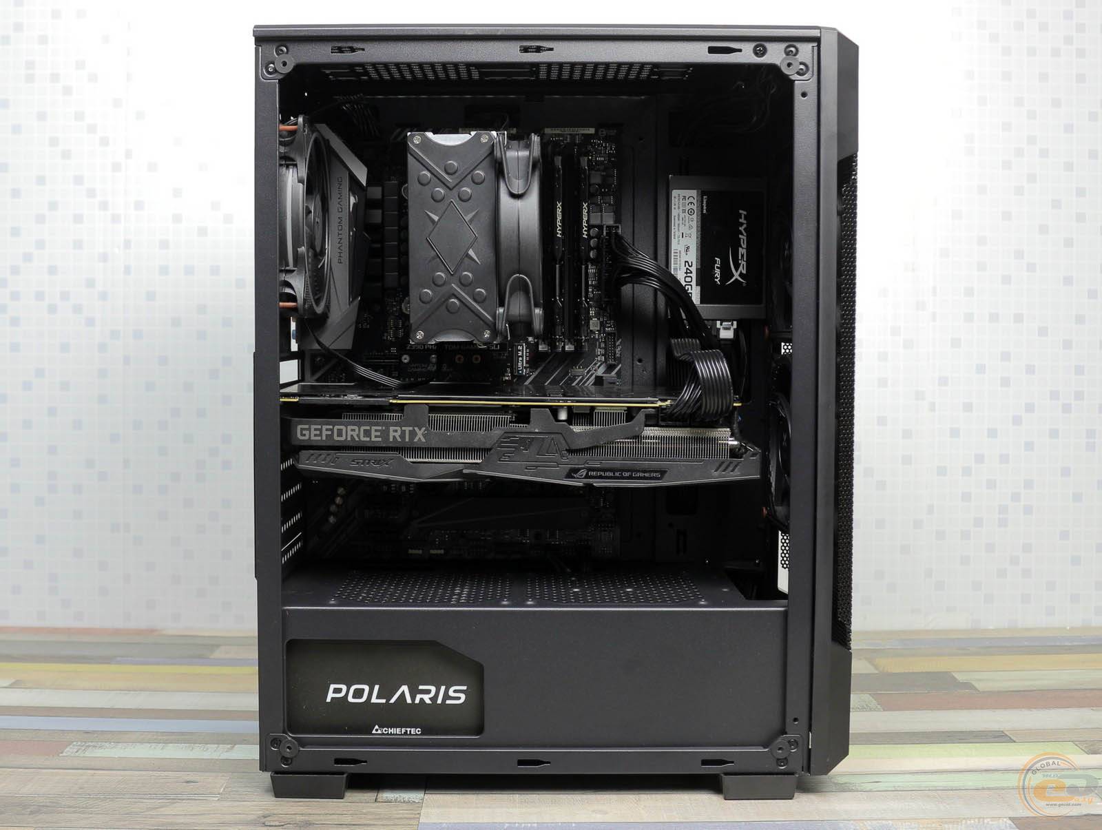 Модель володіє актуальним компонуванням з сітчастою фронтальною панеллю і скляною бічною. Виглядає така комбінація відмінно. Пилові фільтри є на верхній і нижній панелі, але не на фронтальній. Усередині помістяться габаритні комплектуючі: відеокарти довжиною до 300 мм і процесорні кулери висотою до 160 мм. Звичною кошика для накопичувачів немає. Не всім вона і потрібна, адже все більше число користувачів переходить на M.2 SSD.