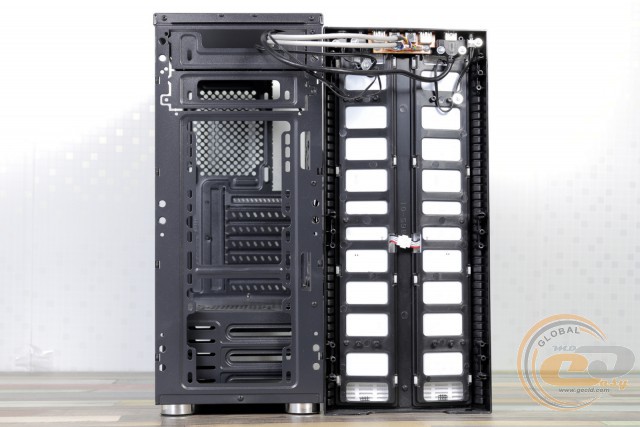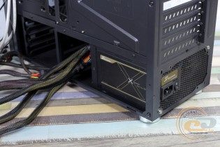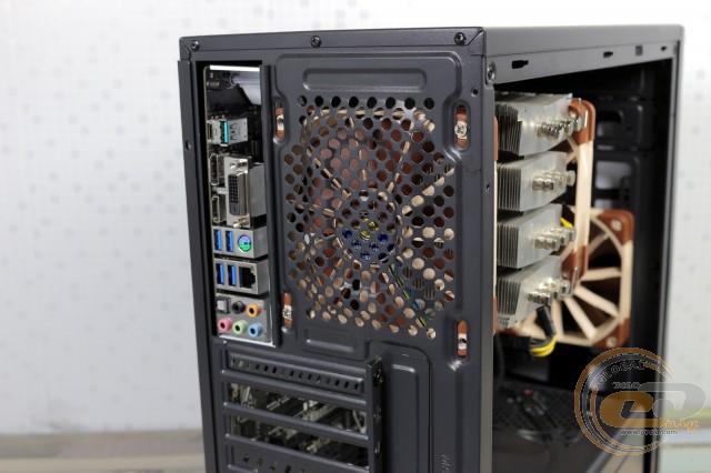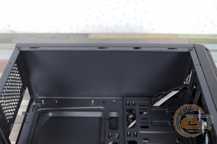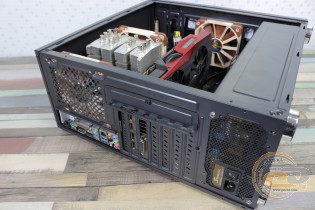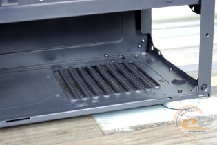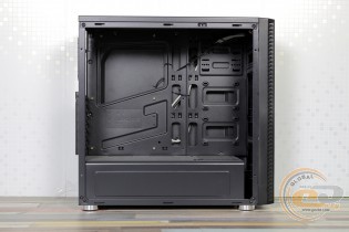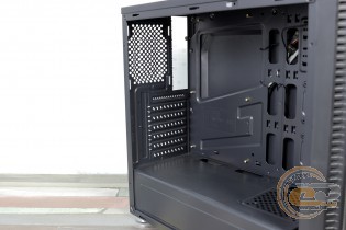 Задня панель є частиною шасі, тому вона також пофарбована в чорний колір. З цікавого тут є вертикальні пази для кріплення 120-мм пропелера, що дозволяють змінювати висоту його розташування. Також радує нижнє розташування БЖ, а ось одноразові заглушки (за винятком верхньої) явно вказують на ціновий діапазон пристрою.