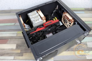 Відеокарта ASUS ROG Matrix Platinum GTX 980 з довжиною 309 мм всередину Vinga Jax-02/Black встановлюється легким рухом руки, та й до граничних 395 мм залишається ще великий запас. При встановленні переднього вентилятора максимально допустима довжина відеоадаптера зменшується до 370 мм. Простіше кажучи, сюди поміститься абсолютна більшість доступних на ринку моделей, навіть заснованих на топових GPU.