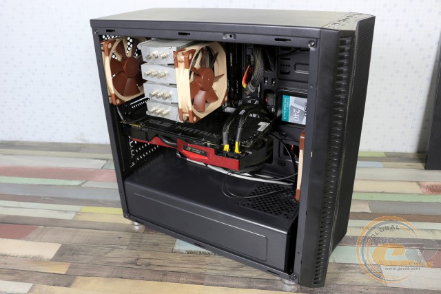 В усьому ж іншому дане рішення поєднує в собі риси пристроїв з різних цінових сегментів. Так, разом з нижнім розташуванням БЖ, пиловим фільтром, парою місць для SSD, повним фарбуванням у чорний колір і можливістю прихованого укладання кабелів ви також знайдете повну відсутність антивібраційних прокладок, одноразові заглушки слотів розширення і лише один порт USB 3.0. Також певну незручність може викликати специфічне кріплення 3,5" пристроїв, а 5,25" оптичний привід або реобас взагалі нікуди підключити.