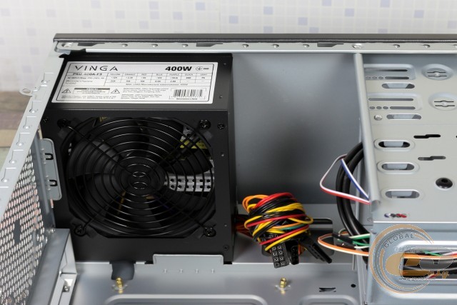 Комплектний блок живлення Vinga PSU-400A-F3 в роздробі коштує всього $15. Сам виробник зазначає, що даний пристрій призначений для систем офісного рівня, що підтверджують показники на етикетці. Так, максимальна потужність джерела дорівнює 400 Вт, а це дуже близько до сумарних показників усіх ліній живлення (404,5 Вт). Якщо ж говорити про найбільш затребуваний канал +12В, то його потужність дорівнює 264 Вт, тобто всього 66% від максимального значення. Враховуючи це, ми також радимо використовувати дане джерело виключно в складі системи без дискретного відеоадаптера або з рішенням початкового рівня, яке не вимагає підключення кабелю живлення PCIe. Тим більше додаткових конекторів тут усього чотири: по парі SATA і PATA.