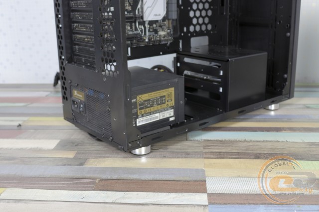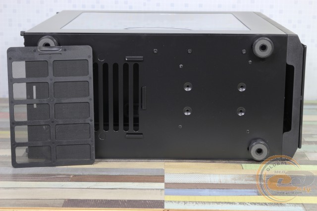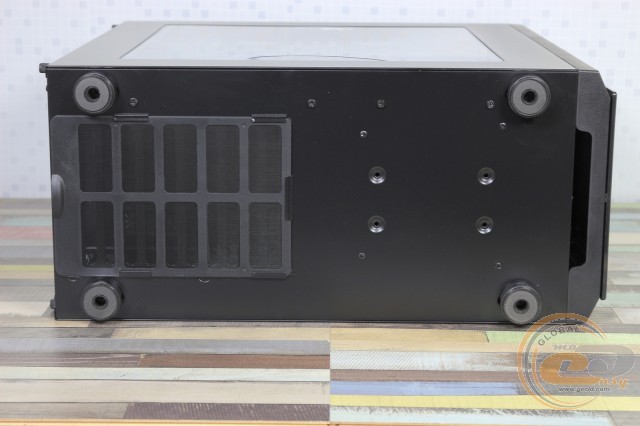 На дні корпусу притулився вентиляційний отвір з пиловим фільтром, призначений для доступу холодного повітря до БЖ. Є дві пари пластикових ніжок висотою 18 мм із тоненькими гумовими накладками, які забезпечують хорошу стійкість на різних типах поверхні і достатній приплив повітря для джерела живлення.