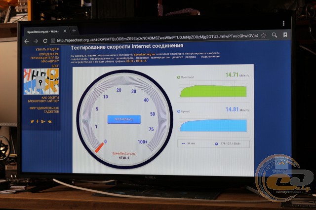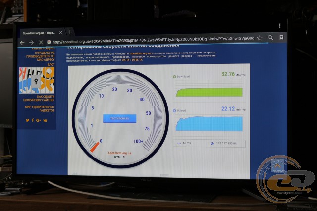 Але якщо для підключення до глобальної павутини ви використовуєте Ethernet-кабель, тоді можна отримати ще вищі показники: 52,76 Мбіт/с при завантаженні даних і 22,12 Мбіт/с при віддачі.