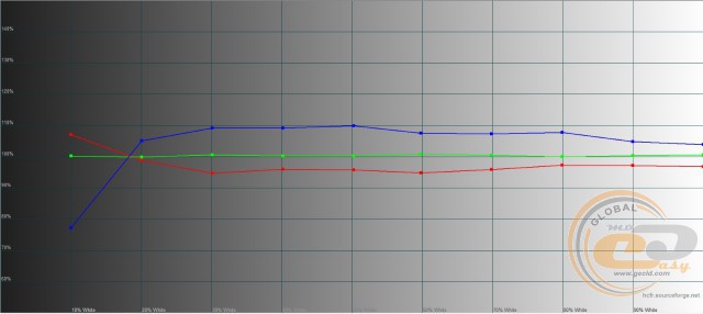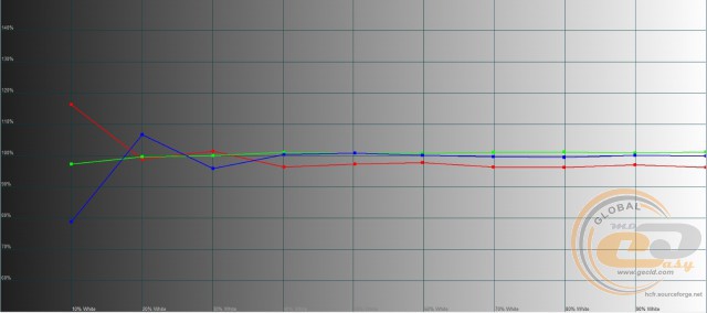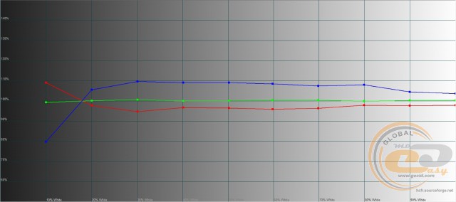 Зате відверто порадувало налаштування рівнів RGB: нехай не всі вони лежать на еталонній лінії 100%, проте в основному знаходяться в межах ±10%. Тобто зображення матиме максимально нейтральний характер, без завалу в теплі чи холодні відтінки.