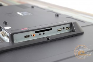 Навіть при настінному монтажу в користувача зберігається зручний доступ до інтерфейсних роз'ємів завдяки продуманому їх спрямуванню вниз або вбік. Усі вони підписані, що дозволяє легко зорієнтуватися при пошуку потрібного роз'єма. Приємно виділити наявність портів: RJ45, D-Sub (VGA), двох HDMI (для одного заявлена підтримка MHL), двох USB для підключення зовнішніх накопичувачів або периферійних пристроїв, двох 3,5-мм аудіо для підключення мікрофона та навушників або зовнішніх колонок, а також портів SCART, YPbPr, CI+ і Coax. Два роз'єми передбачені для підключення антен: «RF (S2)» використовується для супутникової антени, а «RF (T2)» – для звичайної телевізійної.