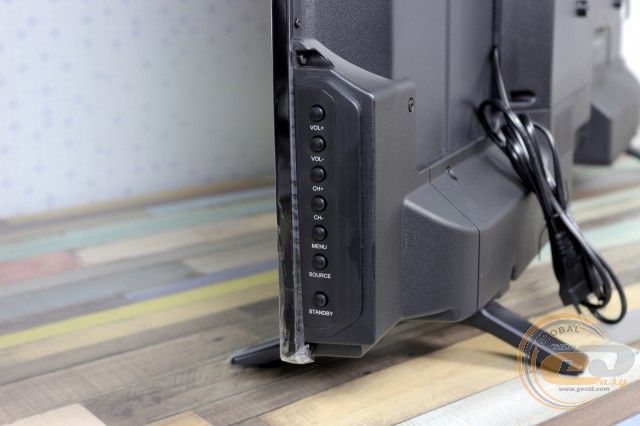 У разі втрати або несправності пульта дистанційного керування на одній з бічних сторін передбачений набір базових елементів управління. З їх допомогою можна змінювати рівень гучності, перемикати канали, відкривати меню, вибирати джерело сигналу та переводити його в режим очікування.