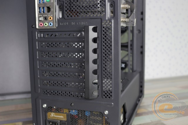Six out of seven expansion slot covers are disposable. The tool-free mounting system is not provided - the manufacturer suggests using regular screws.