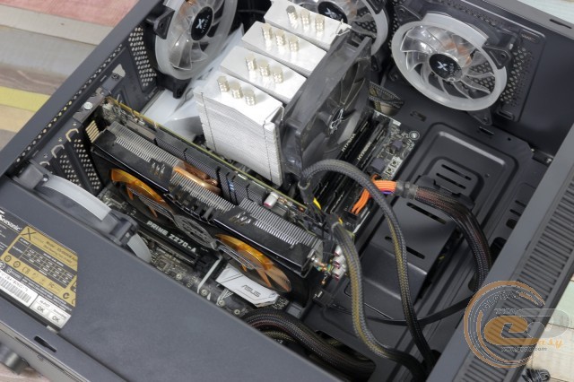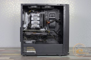 Inside the case, there is room for the most bulky components, and the assembly process itself raises no questions. We were only disappointed by the weak efficiency of the fans on the front panel, as they simply have nowhere to draw cool air. And only due to the large number of installed fans do we have very decent temperature indicators for components with high heat dissipation. But the overall efficiency of the seven fans would be higher, provided there was sufficient airflow to the front fans.