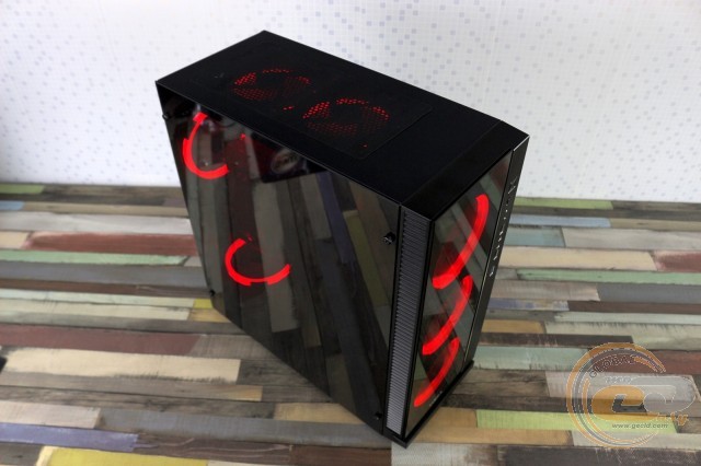 Thanks to the lighting of the included fans, the finished PC in the on state looks very bright and noticeable. The user has access to seven colors (red, green, blue, soft yellow, turquoise, purple, and white) and three operating modes (automatic color switching, fading, and flickering), the speed of which can be adjusted. At the same time, the remote control works easily from a distance of up to 5 meters.